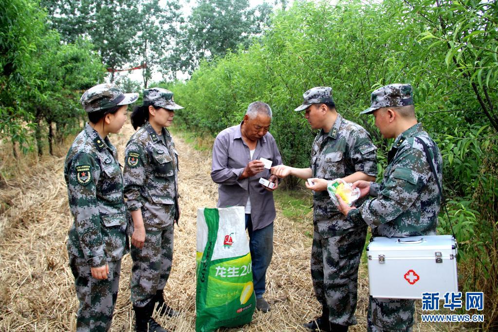 联勤保障部队第990医院医疗队深入河南省确山县为农忙村民送医送药(6月3日摄)。新华社发