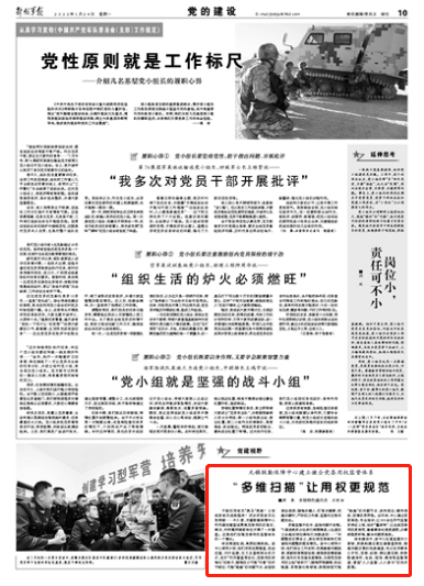 干部任用有无“黑马”现象?士官选取有无违规程序?评功评奖有无论资排辈……不久前,无锡联勤保障中心作风建设督查组聚焦党委用权的盲点、堵点,对所属师旅团单位开展了一次督查。这是他们加强党委用权监督体系的一个镜头。