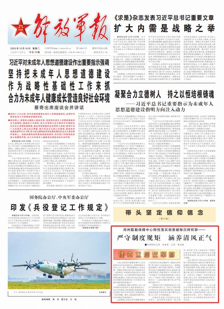 郑州联勤保障中心刚性落实规章涵养清风正气