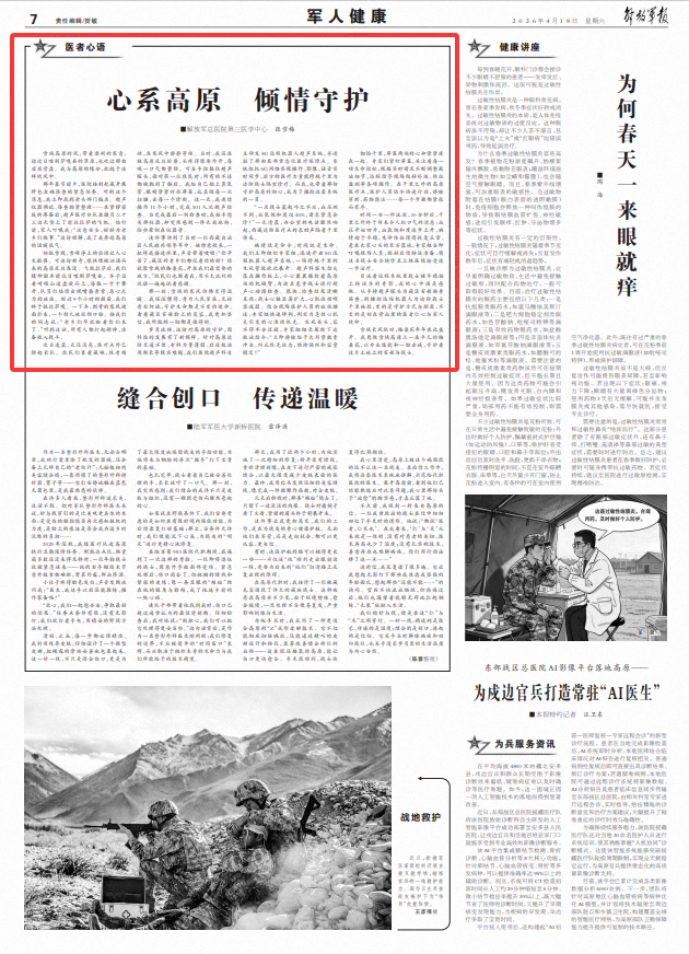 雪域长风依旧,格桑花年年在此盛开。我愿做雪域高原上一朵平凡的格桑花,以专业技能和一腔赤诚,守护着这片土地上的百姓与战士。