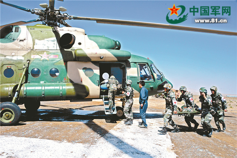 某联勤保障旅卫生营在演习中用直升机后送伤员。张 放摄