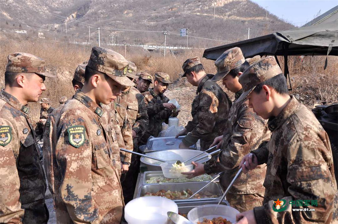 正午时分,部队行军至某就餐地域,炊事班立即将野战炊事车做出的美味佳肴摆在官兵面前。就餐休息过程中,官兵们对美味的饭菜赞不绝口。炊事班班长段海平表示:“以往由于没有野战炊事车,倘使遇上大型演习任务,官兵们只能靠自热食品充饥,如今,新型的野战炊事车能够随时随地为战士们提供热气腾腾、色香味俱全的饭菜,冬日里官兵们不仅吃的开心,也吃得暖心。”