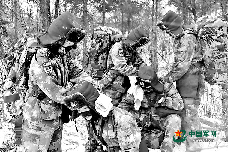 “严寒条件下训练,不仅穿衣戴帽有讲究,还要保证手脚别冻着。” 张铁鑫一边行军一边指导。手脚是身体的末端,离心脏最远,血液循环慢,供血量少,皮下脂肪层也比较薄,是最容易感到寒冷和发生冻伤的部位。官兵在严寒条件下行军、潜伏、进行战术训练时,鞋袜要大小适宜、宽松适度。鞋带不要系得太紧、不要穿多层袜子、不要垫太厚的鞋垫,否则会妨碍身体末端血液循环,使脚趾发冷发麻,还可能发生冻伤。在雪地行走时要扎紧裤腿,以防鞋靴内灌雪。