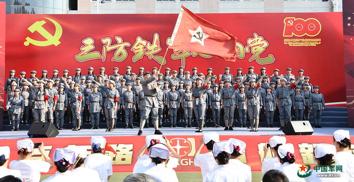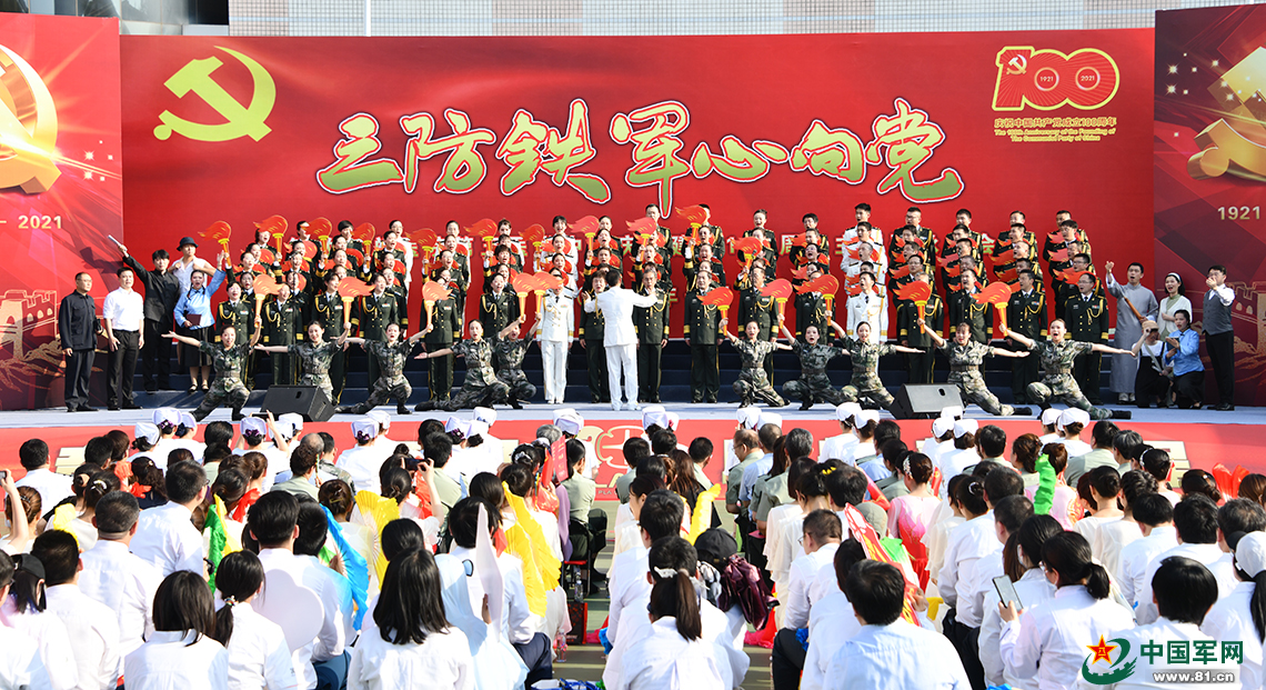 此次广场主题歌咏大会,从中心党委常委到基层官兵、从专家教授到医护人员、从离退休老干部到幼儿园小朋友,共千余人组成歌唱队伍,他们以领唱、合唱、配音朗诵等表演形式,深情演绎红歌背后的党史故事,唱响对党的赞歌。