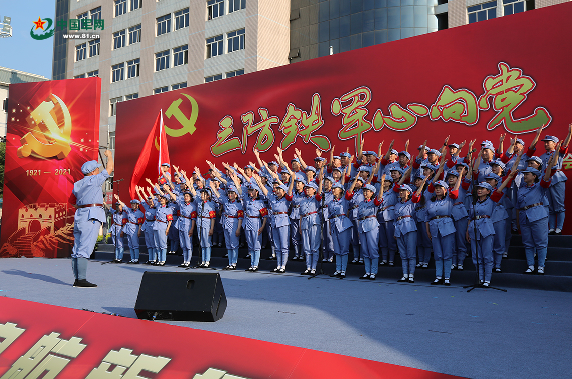 鲜红的党旗下,中心党委常委深情诵读着对党和祖国的祝福,一曲把《一切献给党》唱出五中心“三防人”共同的心声。中心幼儿园150名小朋友合唱《我们是共产主义接班人》,深情表达对党的热爱,由衷抒发对祖国的朴素情感。