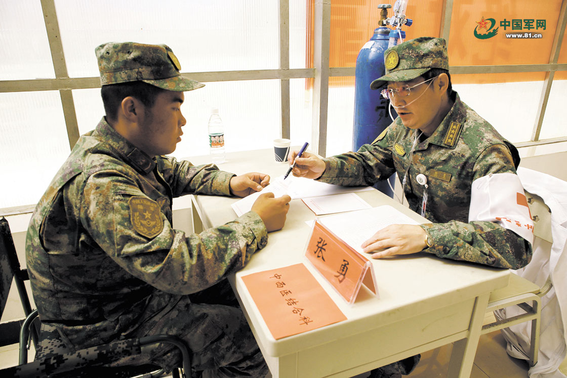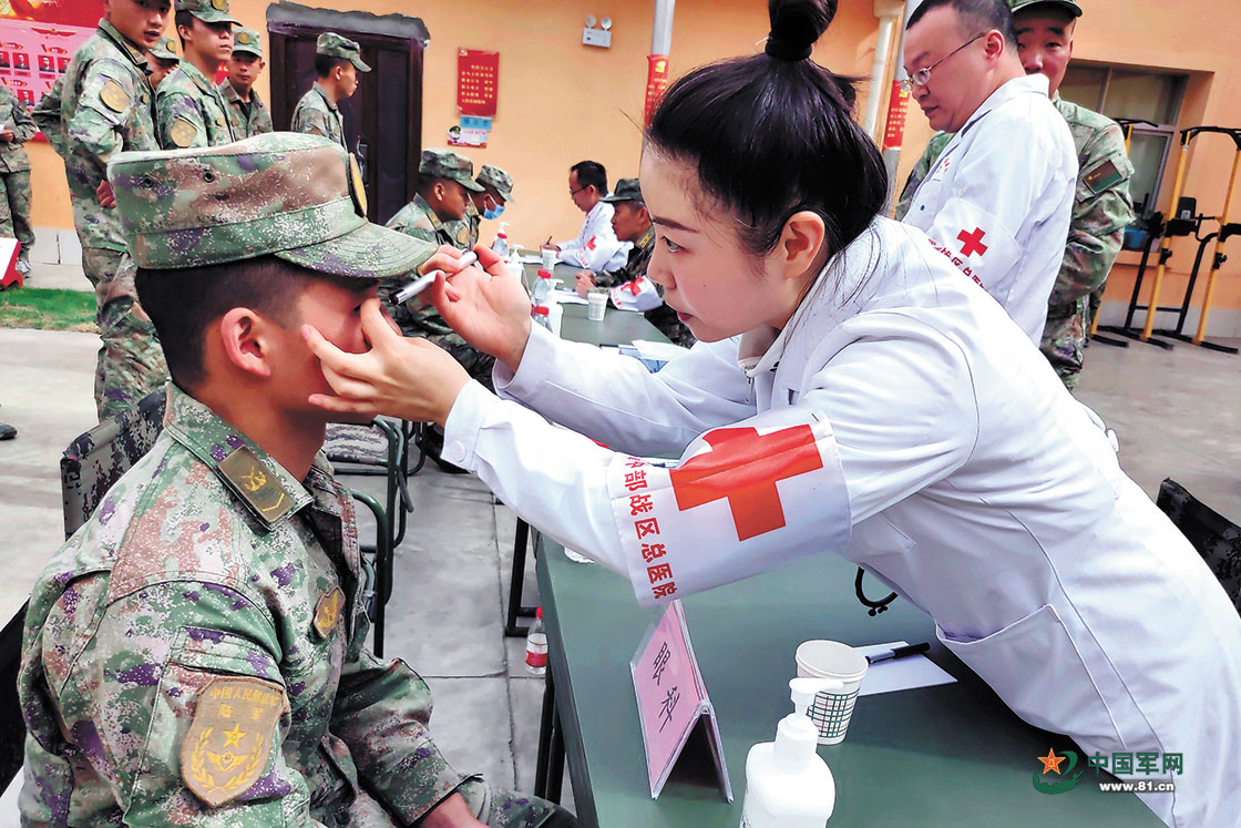 中部战区总医院专家医疗队到基层巡诊,一位军医为战士诊疗。谭志正、苗长昊摄