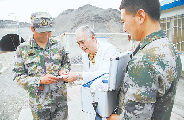 近日,69岁的维吾尔族医生木沙·司马义,又一次来到达坂城民兵护路分队天山隧道1号执勤哨所进行义务巡诊。天山隧道群位于乌鲁木齐市达坂城和吐鲁番市交界的大山之中,交通不便,护路民兵每次看病都要跑几十公里。木沙·司马义得知情况后,经常为民兵义务巡诊。