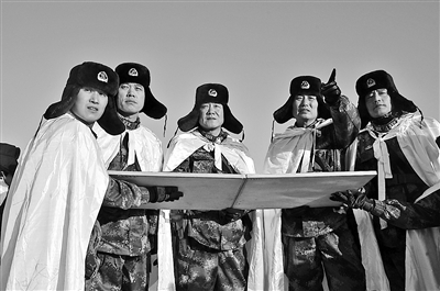 隆冬时节,黑龙江省大兴安岭军分区利用恶劣天候,从难、从严、从实战出发苦练精兵。图为军分区领导和战士们一起鏖战狂风暴雪中。冯 锐摄