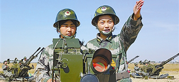“方向1800,高度600,各炮捕捉目标!”指挥员一声令下,各班迅速捕捉空中目标,一枚枚炮弹呼啸而出,女民兵完成了漂亮的空中阻击。