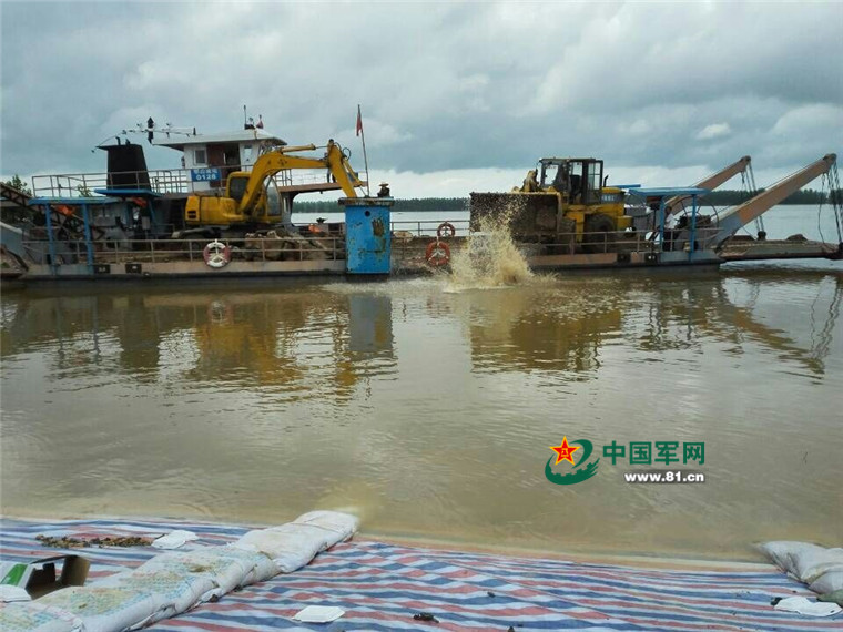受连日强降雨影响,应城市天鹅镇汉北河甲河沟汉江饮水工程堤段水位猛涨,河堤受雨水浸泡严重,部分地段出现滑坡,形势严峻。4日上午8时,应城市人武部紧急集结140余名民兵应急分队人员赶赴现场,抢修堤坝,清除堤体正面淤泥,用沙袋加固,在堤坝反面开挖滤沟,填充砂石,滤去堤体和堤顶积水,防止积水浸泡造成堤体坍塌。经过数10个小时抢修,堤体加固150余米,开挖滤沟三条,搬运沙袋4000多袋,搬运砂石800多吨。目前,水位仍在上涨,最低处距离堤顶仅1点5米,民兵仍坚守在一线奋战。