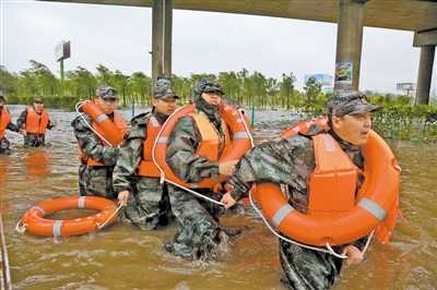 邢台军分区官兵紧急赶赴受灾地区,解救受困群众。刘 派摄