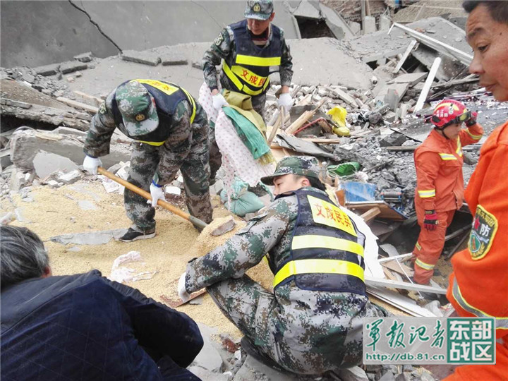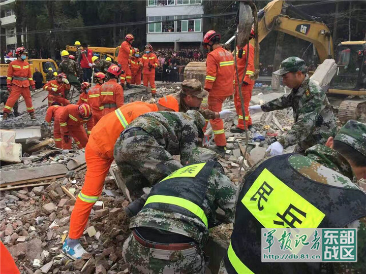 军报记者-东部战区(孟晓飞、宋芳龙、记者代烽)今天上午8时许,温州文成县百丈漈镇外大会村一幢5层砖混结构民房突然发生垮塌,初步确认2户人家9名群众被埋,其中一户是军属。