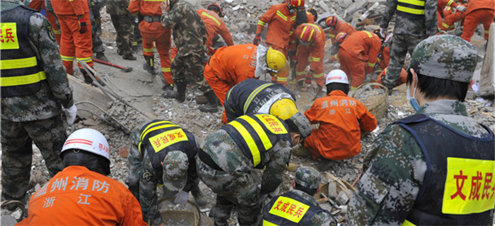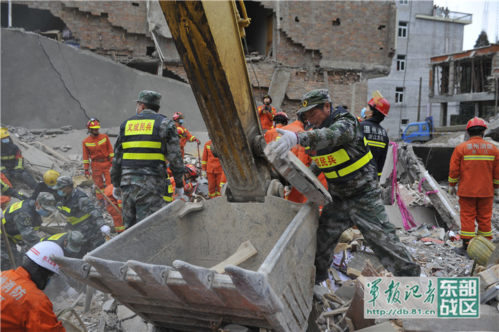 文成县人武部部长吴步程介绍说,共有81名应急民兵参与救援,他们到达后不久,武警和消防官兵也赶来了,组织两台吊机和一台挖土机迅速进行作业,将大块水泥、钢筋等倒塌物搬移出来。