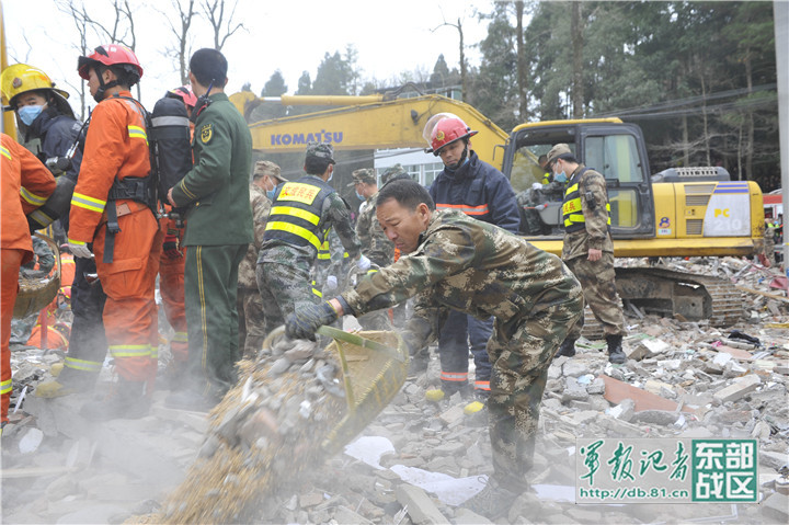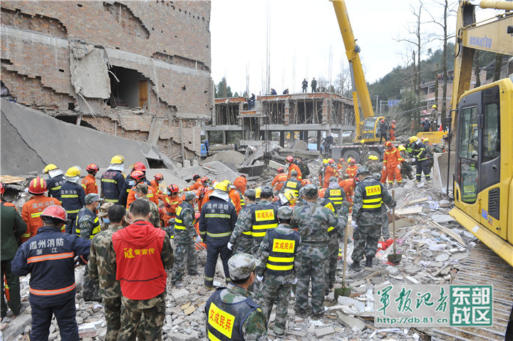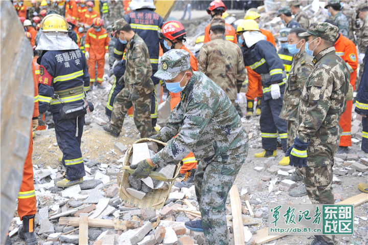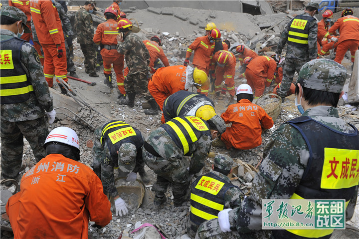 温州军分区组织民兵紧急救援房屋倒塌被困群众