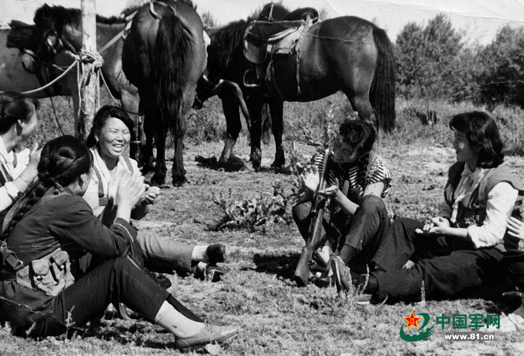 新疆生产建设兵团第九师孙龙珍民兵班女战士巡逻路上小憩。(资料图)