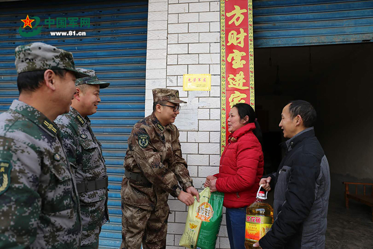 1月18上午,南充市蓬安县相如镇的民兵爱心小分队官兵来到该镇木耳村7组军属母树文家中,暄寒问暖、释疑解难,帮助打扫卫生、收拾院落、划劈木柴,送上新春的慰问与祝福,共迎新春佳节。