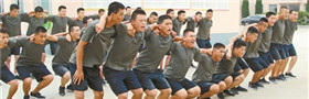 8月下旬,河南省内乡县人武部组织体检合格的322名应征青年到民兵训练基地进行全封闭训练。图为应征青年进行行为拓展训练。全封闭三亚西岛女民兵:“不爱红装爱武装”2017-09-04 15:26