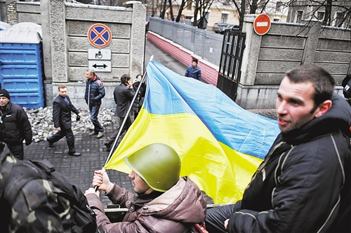 在乌克兰首都基辅,抗议者驱车游行庆祝。新华社发(资料图)