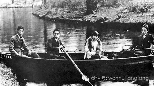 1922年,左起为赵光宸、周恩来、刘清扬和张申府,于德国柏林万赛湖游船上合影
