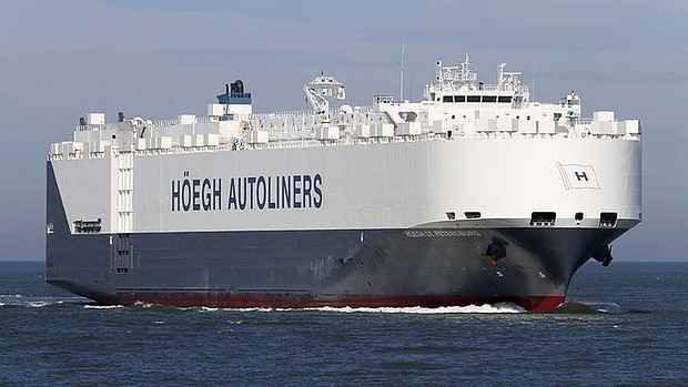 正在目标海域进行搜索的挪威Hoegh St Petersburg号运车船。图片:AP