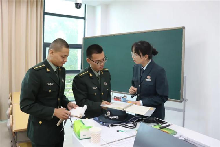 谈到为什么会选择来军校,她说来军校当教员其实是一件很幸运的事情。她很向往军营,向往军人身上那种勇气、奉献和坚守,“我觉得穿上军装的人都很帅气,即使我不能成为一名军人,我也想要一个得以让我离那抹橄榄绿近一点、再近一点的机会。”18年研究生毕业后恰巧碰上全军首次面向社会招聘文职,又恰巧南昌有合适的岗位,于是她前来应聘,现在如愿穿上了这身“孔雀蓝”,“想想感觉很幸运,也很奇妙。可以说,来军校当教员这个选择是‘喜欢和合适撞了个满怀’。”