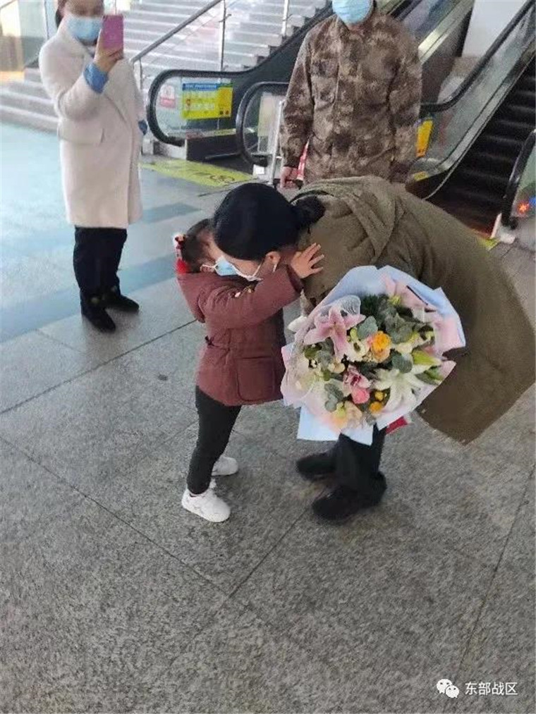 今年服役满12年后,夫妻二人选择退役。汪少波于12月1日退伍回到了家乡宜昌,3日下午,他带着女儿、母亲,到火车站迎接常春红。