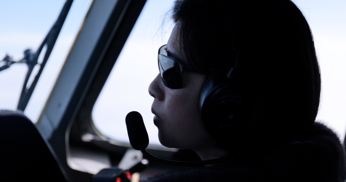 全国人大代表、空军特级飞行员陈金兰在飞行训练中与地面塔台进行联络(2月24日摄)。新华社发(王锐杰摄)