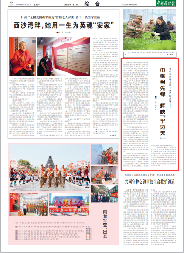 在校园,她们通过讲解国防知识、组织沉浸式军事装备体验,开展青少年国防教育;在乡村治理中,她们化身调解邻里矛盾的“暖心人”,成功调解多起复杂纠纷;在田野上,她们深入田间地头,助力春耕生产;她们还结对帮扶村内孤寡老人、留守儿童数十人,解决生产生活难题,用真情服务群众……