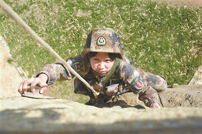 这个掌握通信、装甲等多项技能的特战女兵,没有丝毫犹豫,麻利地攀登到了屋顶。目睹这一幕,这群男兵个个服气了。