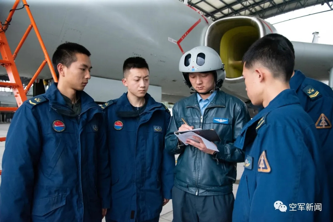 笔者在现场看到,飞行人员刚一到达停机坪,立刻集结在一起,飞行指挥员李伟杰对大家前一天研究过的相关战术战法和特情处置方法进行再强调。年轻的见习指挥员李小浒在旁边认真聆听并记录要点——对飞行指挥员的带教,从飞行前讲话就开始了。