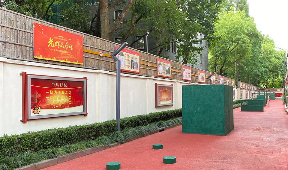 位于营房后面的训练场,展板上记录着党的重大历史事件。尚晓敏 摄