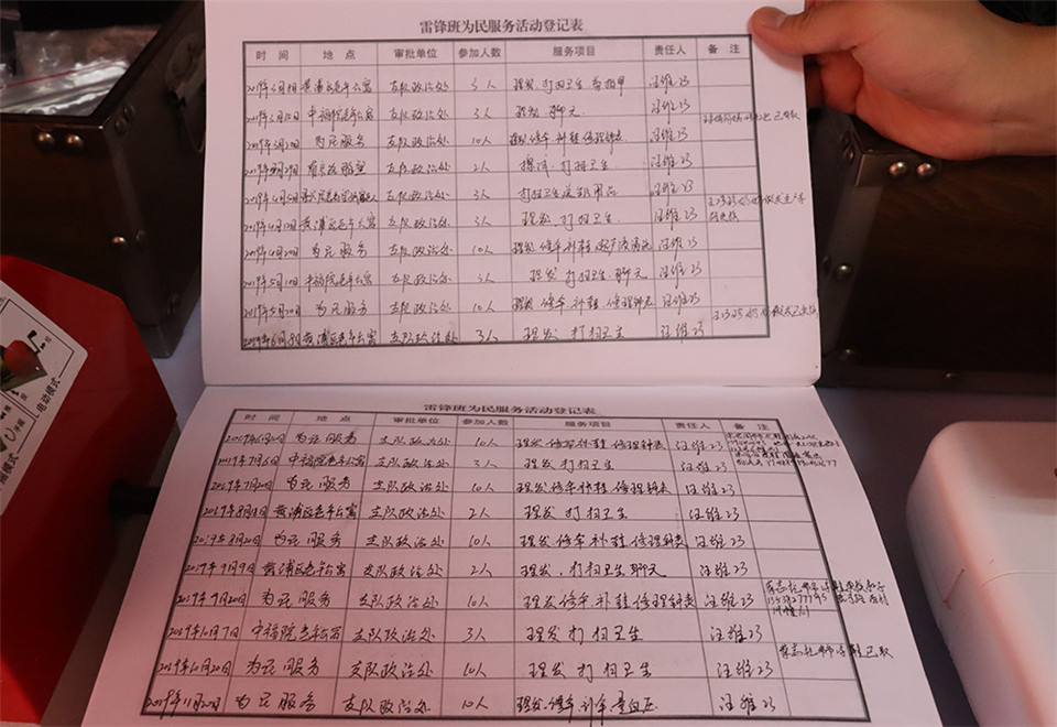 “雷锋班”为民服务活动登记表。 尚晓敏 摄