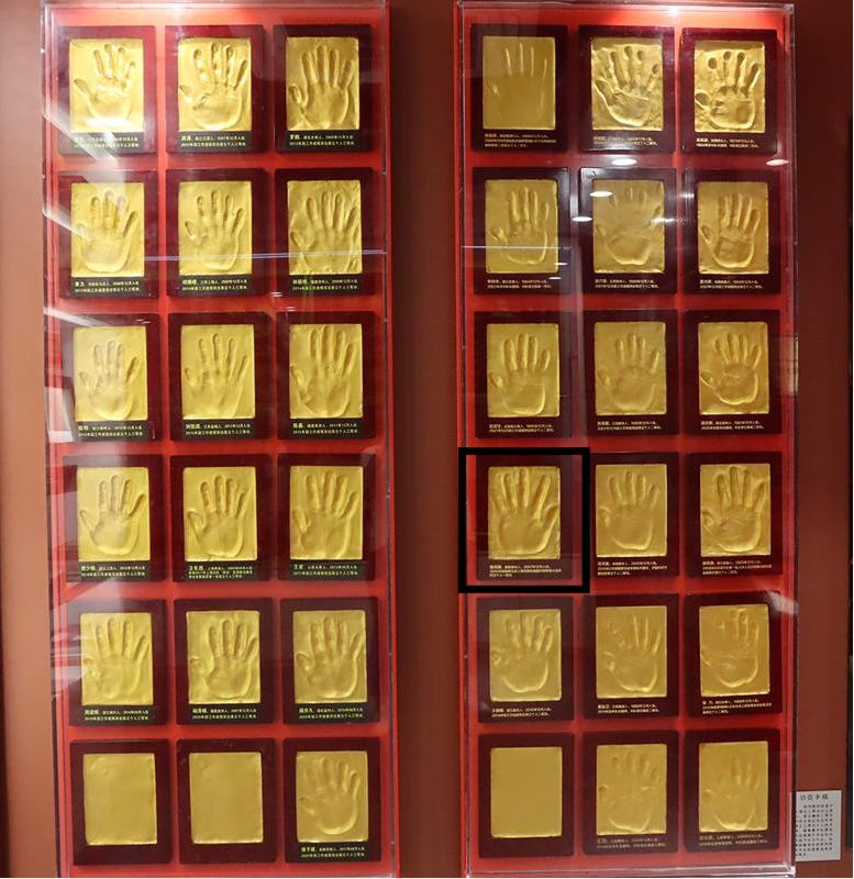 十中队荣誉室内的“功臣手模”。