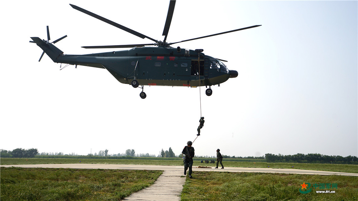 “10余名‘恐怖分子’在实施破坏后劫持了2名人质藏匿于山坳中,我命令立刻出击。”随着指挥员一声令下,搭乘了30余名特战队员的3架直升机腾空而起,迅速出击。