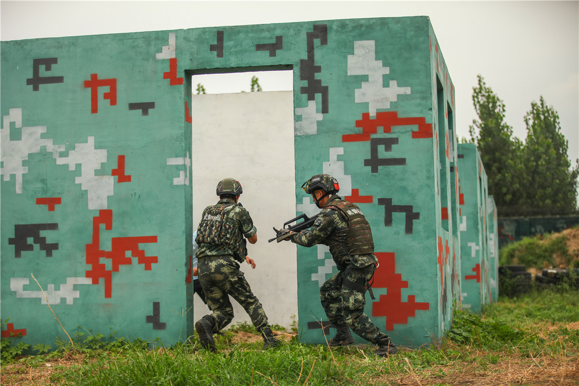 房屋突入训练,十分考验官兵战法运用。周静 摄