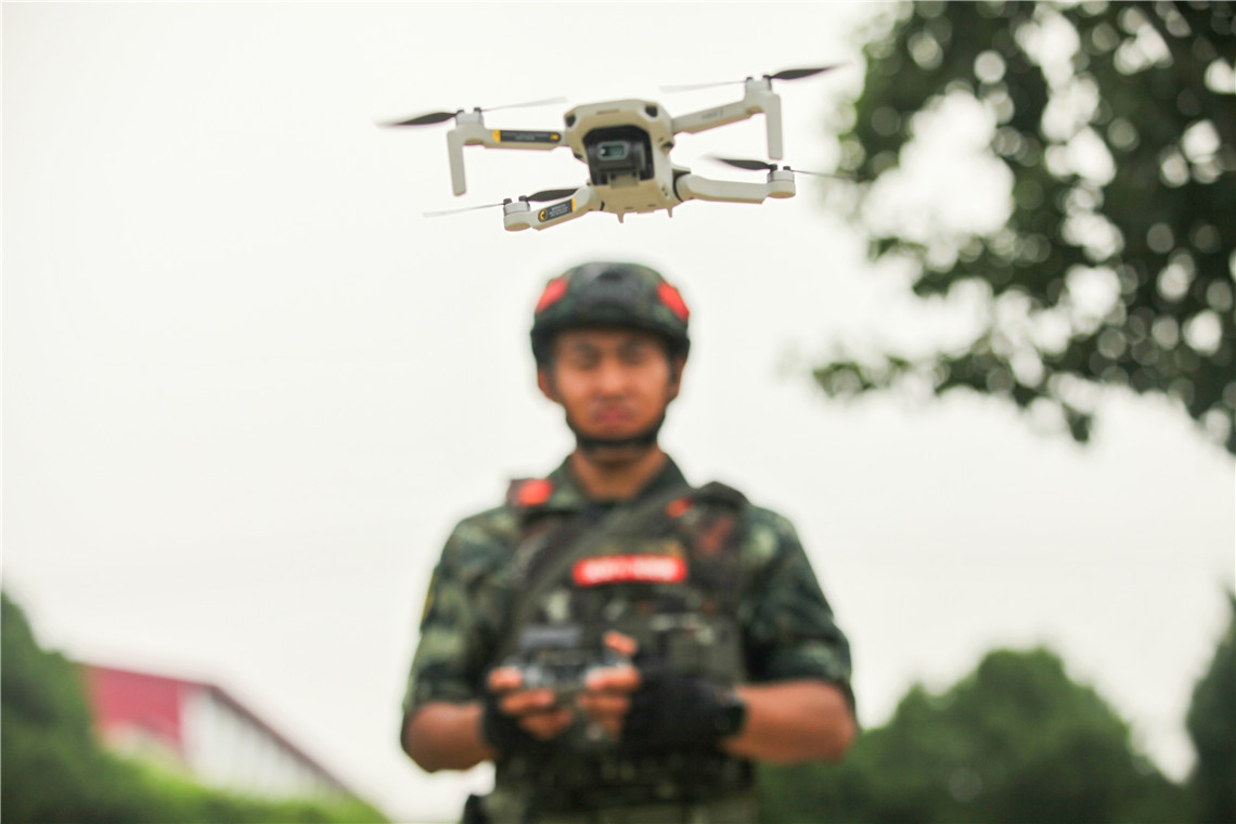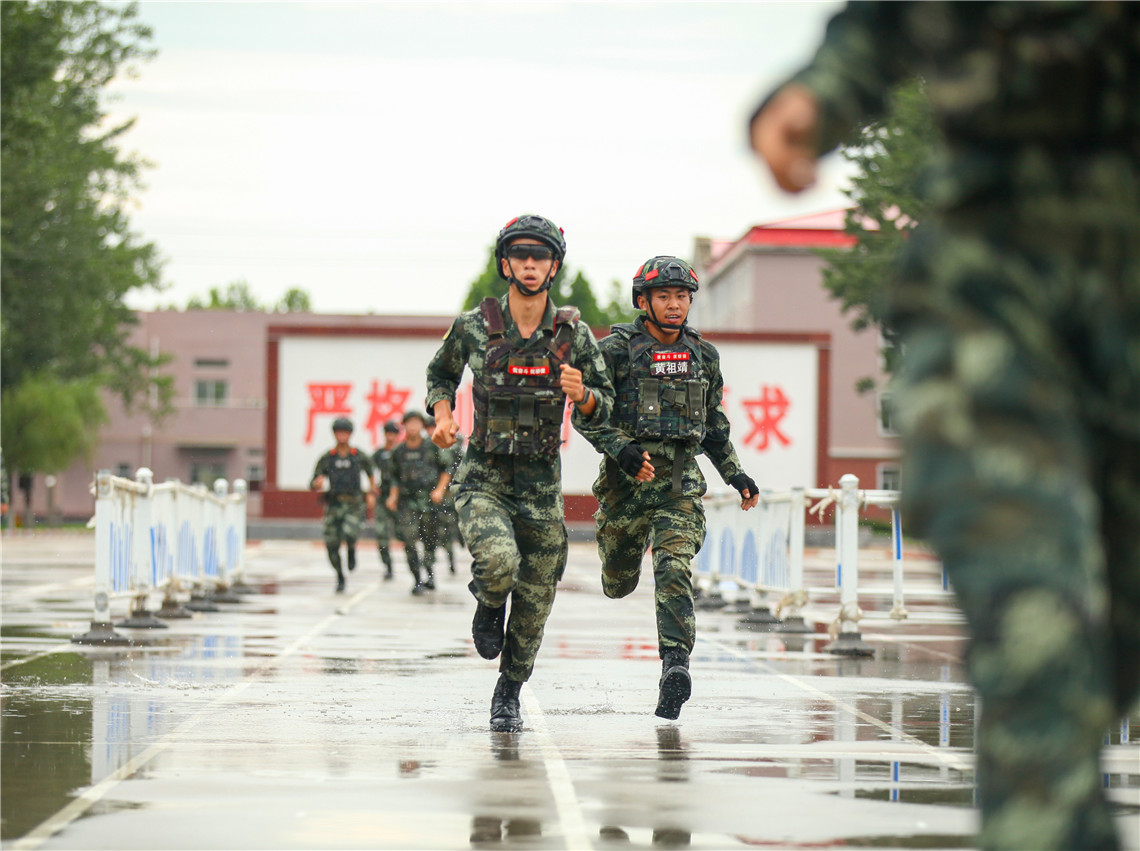 战术队形搜索前进,检验官兵技战术。周静 摄