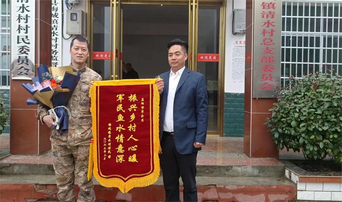 春回大地,安化县梅城镇清水村村部好不热闹,村民严建云等一行20余人,来到村民服务中心,给乡村振兴驻村工作队送上“振兴乡村人心暖、军民鱼水情谊深”锦旗。