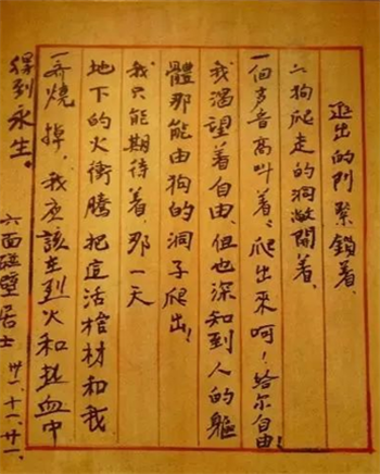 叶挺在重庆监狱中所作《囚歌》的手稿。(资料图片来源于共青团中央微信公众号)
