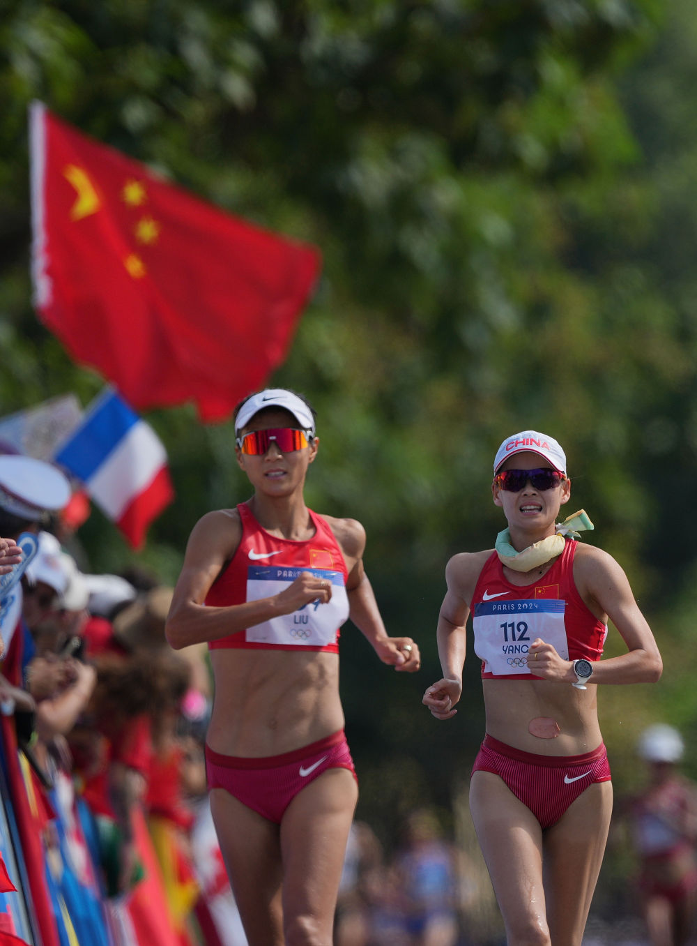 ↑8月1日,刘虹在女子20公里竞走比赛中。37岁的刘虹五战奥运赛场,当被一骑绝尘的队友杨家玉“套圈”时,她笑着为杨家玉加油。