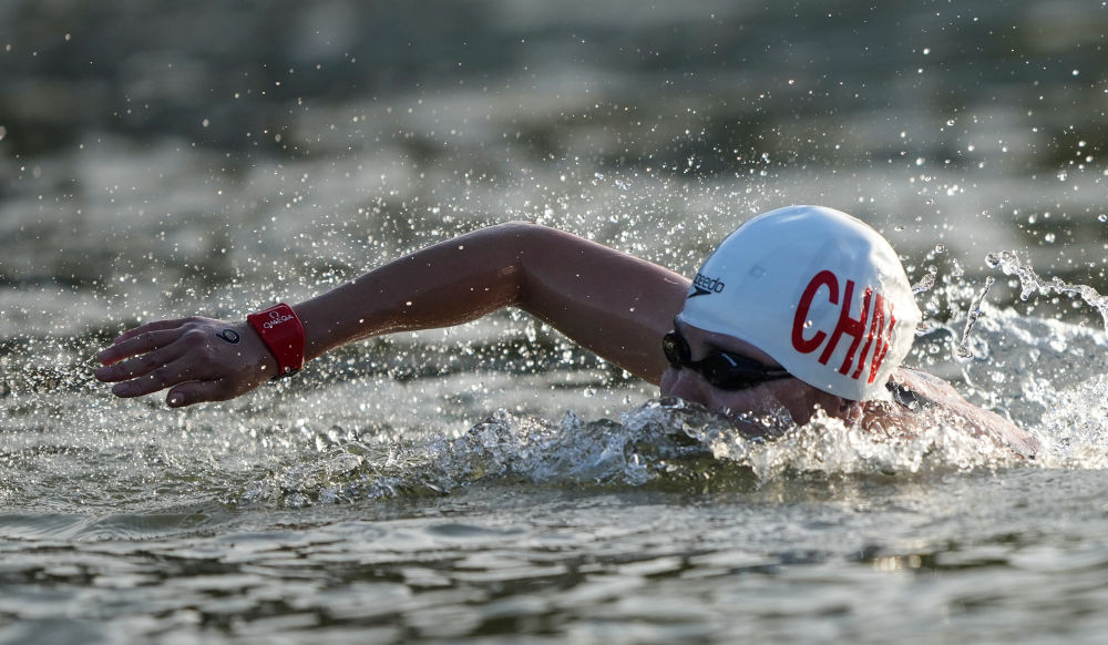 ↑8月8日,辛鑫在马拉松游泳女子10公里比赛中坚持完赛,名列第24名。当所有同行者都已上岸,只有她一个人还在向终点前行,全场观众起立鼓掌,为这位“孤泳者”喝彩。