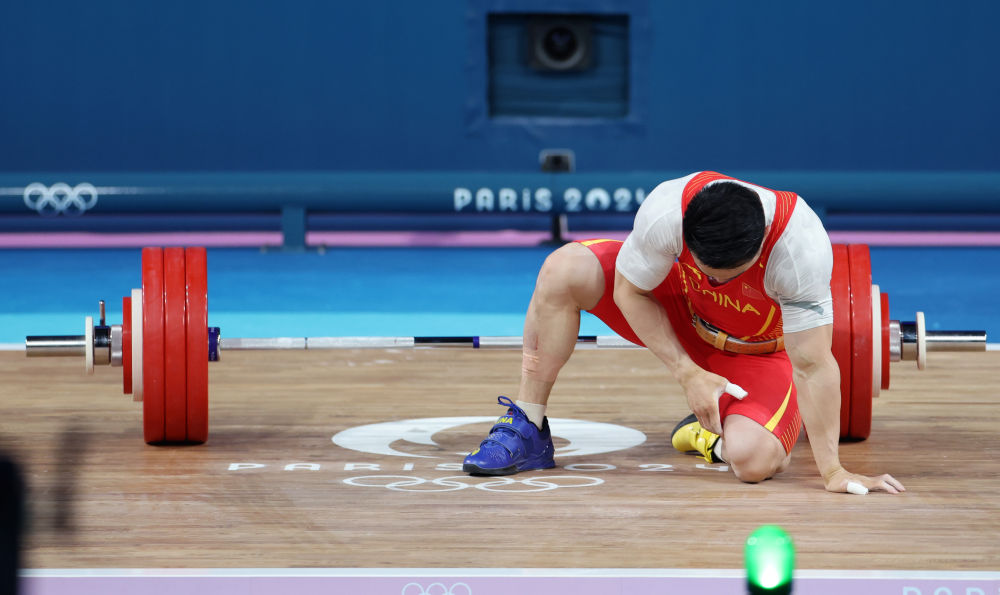 ↑8月8日,石智勇在举重男子73公斤级比赛中受伤,无缘奖牌。
