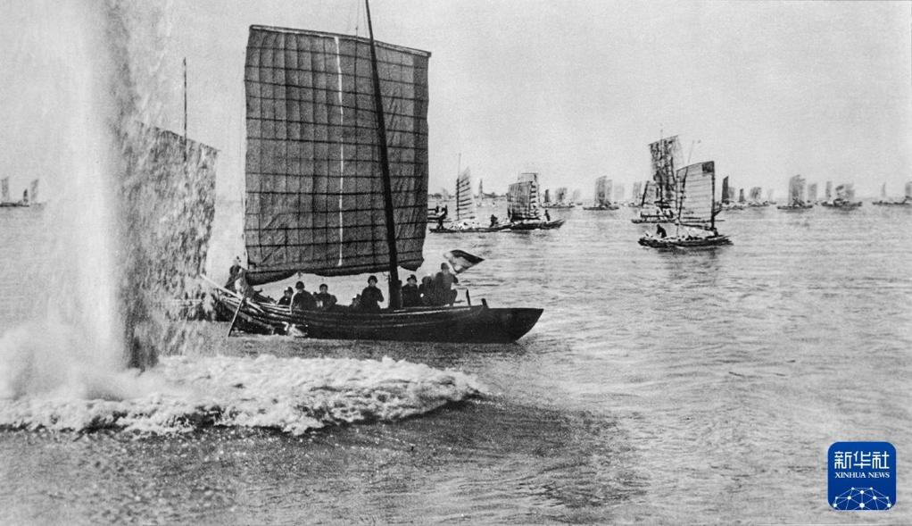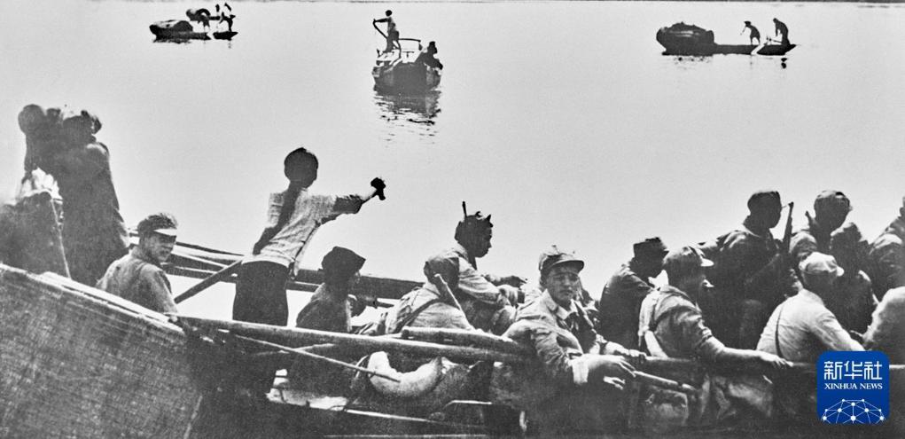 1949年4月20日,人民解放军冒着国民党军的炮火,强渡长江天堑。新华社发 中国照片档案馆馆藏