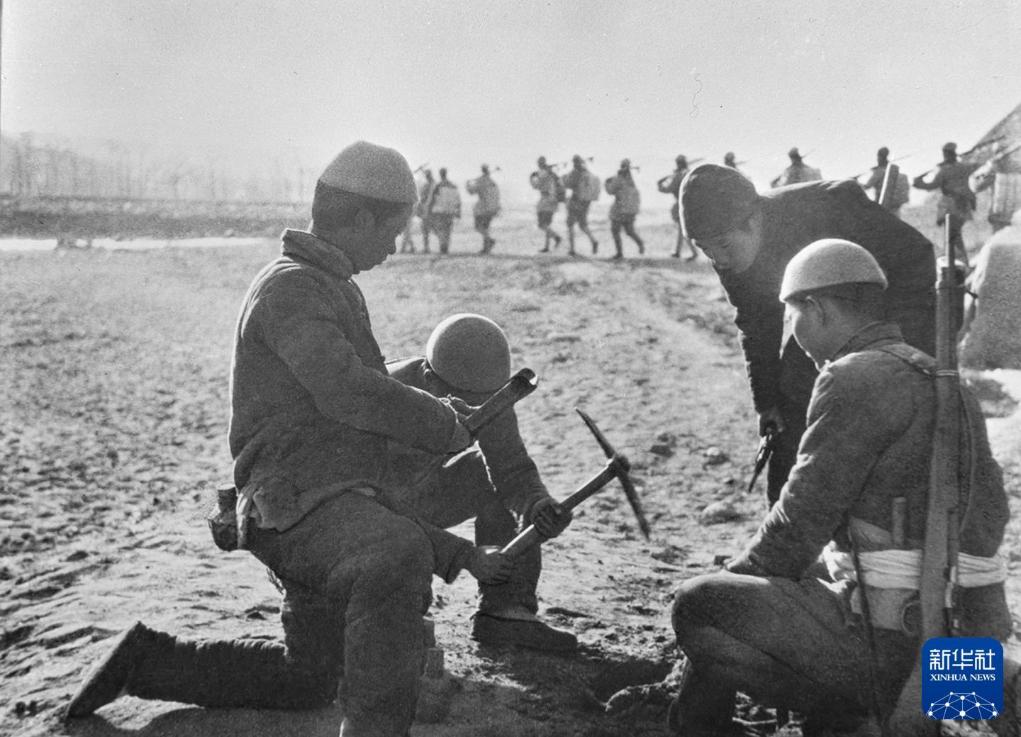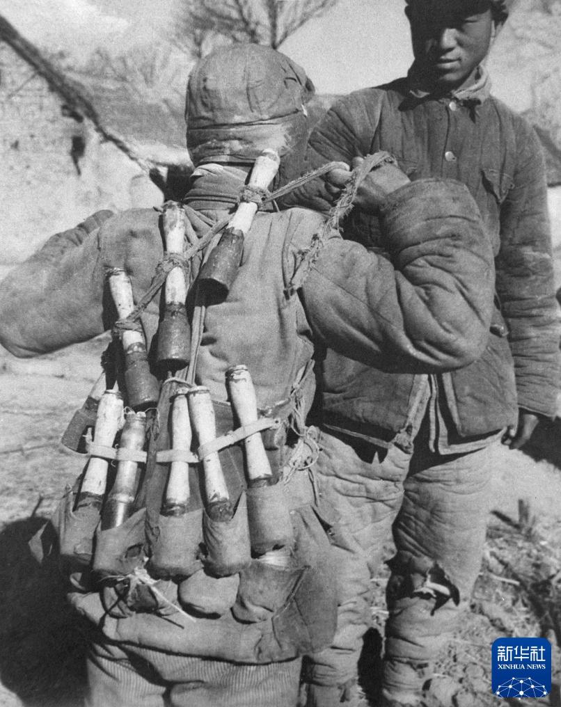 淮海战役中准备奔赴战场的突击队员。新华社记者 袁克忠 摄