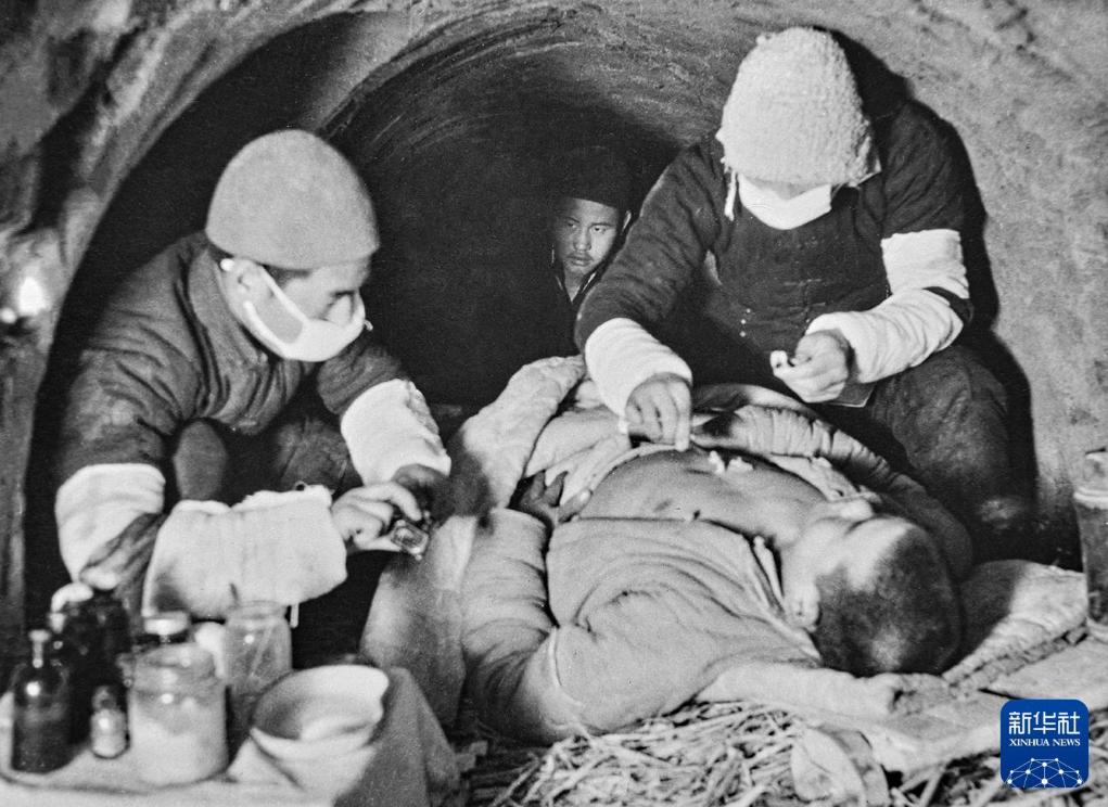 1944年,在冀中根据地的地道医院,八路军伤员正在接受救治。新华社记者 石少华 摄