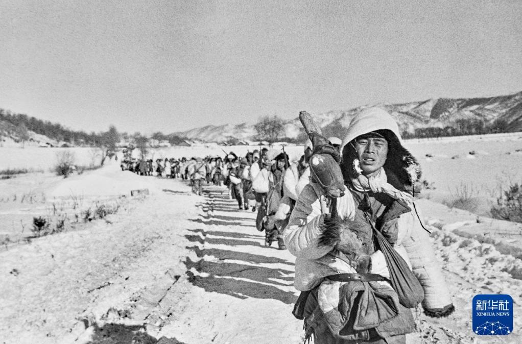 1947年,东北民主联军冒着严寒,行进在冰天雪地中。新华社记者 李九龄 摄