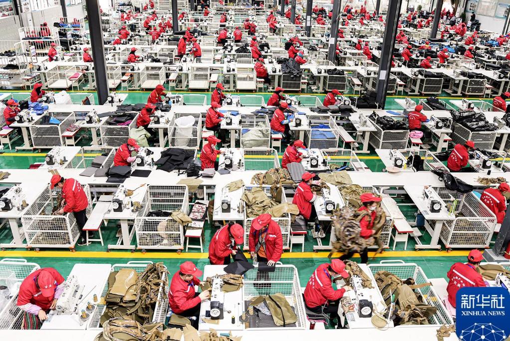 2020年10月17日,甘肃临夏一扶贫车间里,工人在包袋生产线上作业。 新华社发(史有东 摄)
