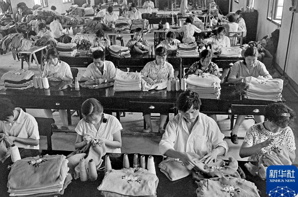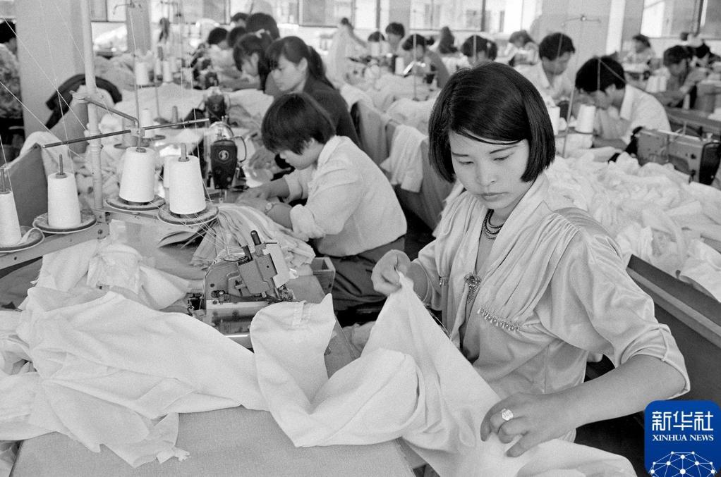 1993年7月,浙江义乌大陈镇的女工在制衣。 新华社记者 吴元柳 摄