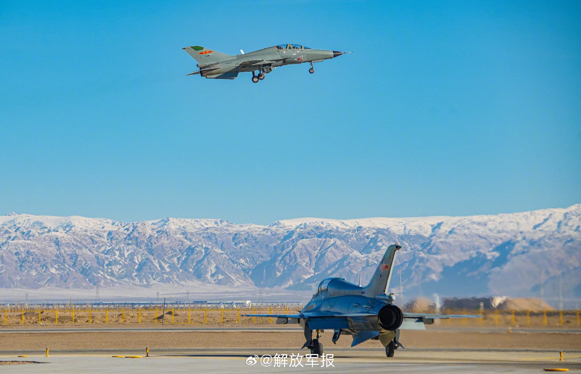 近日,空军西安飞行学院某部开展多批次飞行课目训练。随着指挥员一声令下,数架战机依次滑出,掠过皑皑雪山直冲云霄。(郭田耒、李荔奔、郭俊哲)
