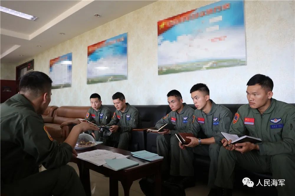 ▲龙宏好参加飞行准备会(右一)