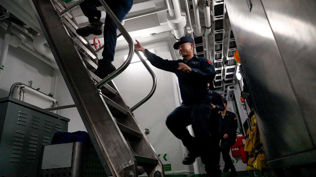 “战斗警报!”“战斗警报!”随着一阵阵急促的警铃声,官兵立即奔向战位,各武器系统迅速做好战斗准备。